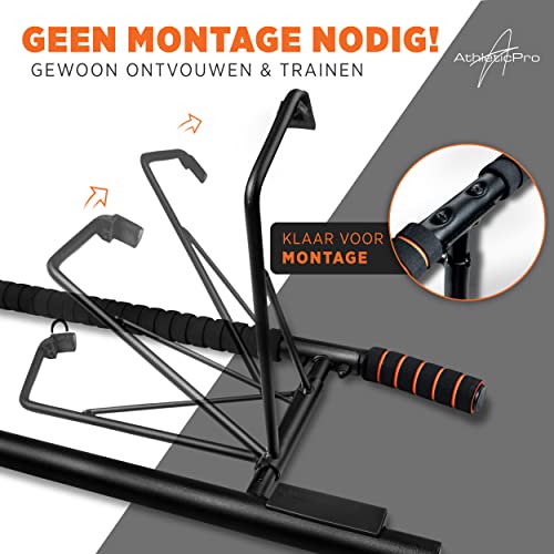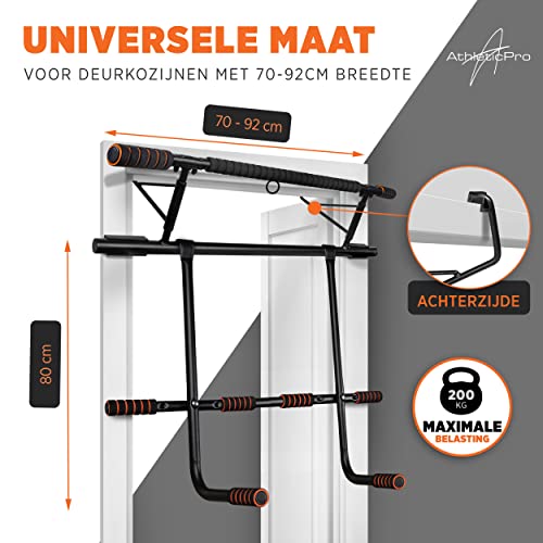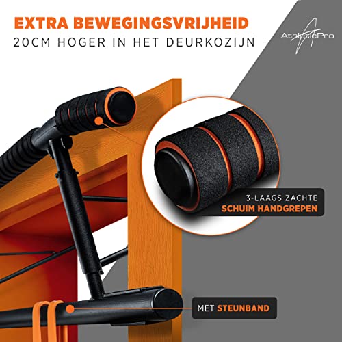 AthleticPro klim-rekstang deurframe – Sterk belastbare pull up bar [tot 200 KG] – Deurstang zonder opbouw – 20 cm hoger in het frame – Ook voor Dips&Push Ups