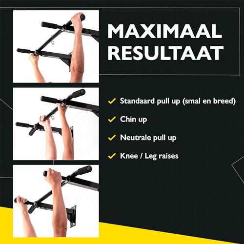 【Het ultieme pull up station】- De pull up bar is een ideaal apparaat voor de ultieme training van jouw lichaam. Met dit multifunctionele fitnessapparaat kun je veelzijdige oefeningen doen in weinig tijd. Bevestig de stang eenvoudig aan de wand om diverse oefeningen te doen. Gebruik de verschillende handgreep posities om variaties in je oefeningen aan te brengen.