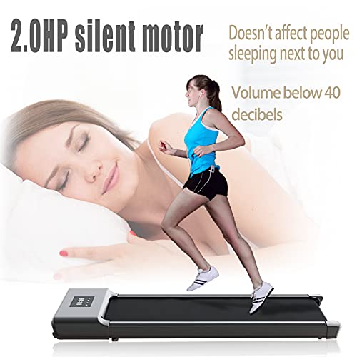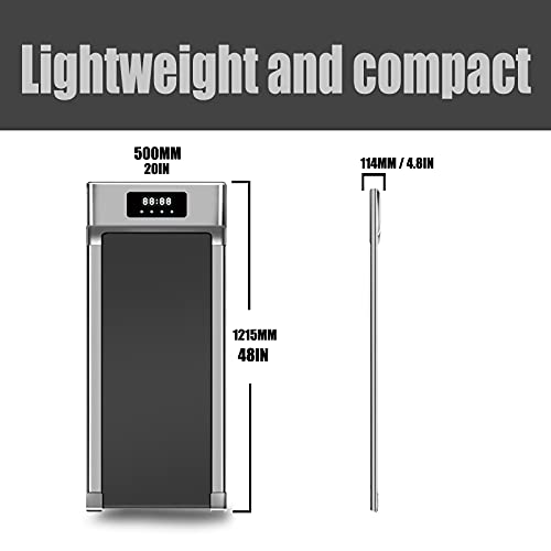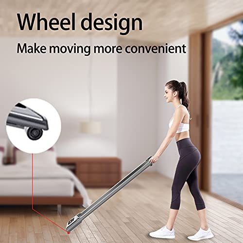 【Compact lichaam & makkelijk op te bergen】: De loopband ligt plat onder je sta-bureau of onder de bank. Neemt een kleine ruimte in beslag, met onderste wielen aan de onderkant van de loopband, die gemakkelijk kunnen bewegen en moeite besparen, deze loopband kan ongeveer 100 kg dragen. Piekvermogen is 2 hp