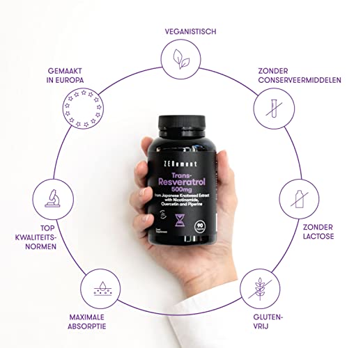 Resveratrol met 500 mg per capsule, 90 Capsules | Premium: 98% Trans-Resveratrol hoge dosis van Japans duizendknoop-extract met Nicotinamide, Quercetine and Piperine | Vegan | Zenement